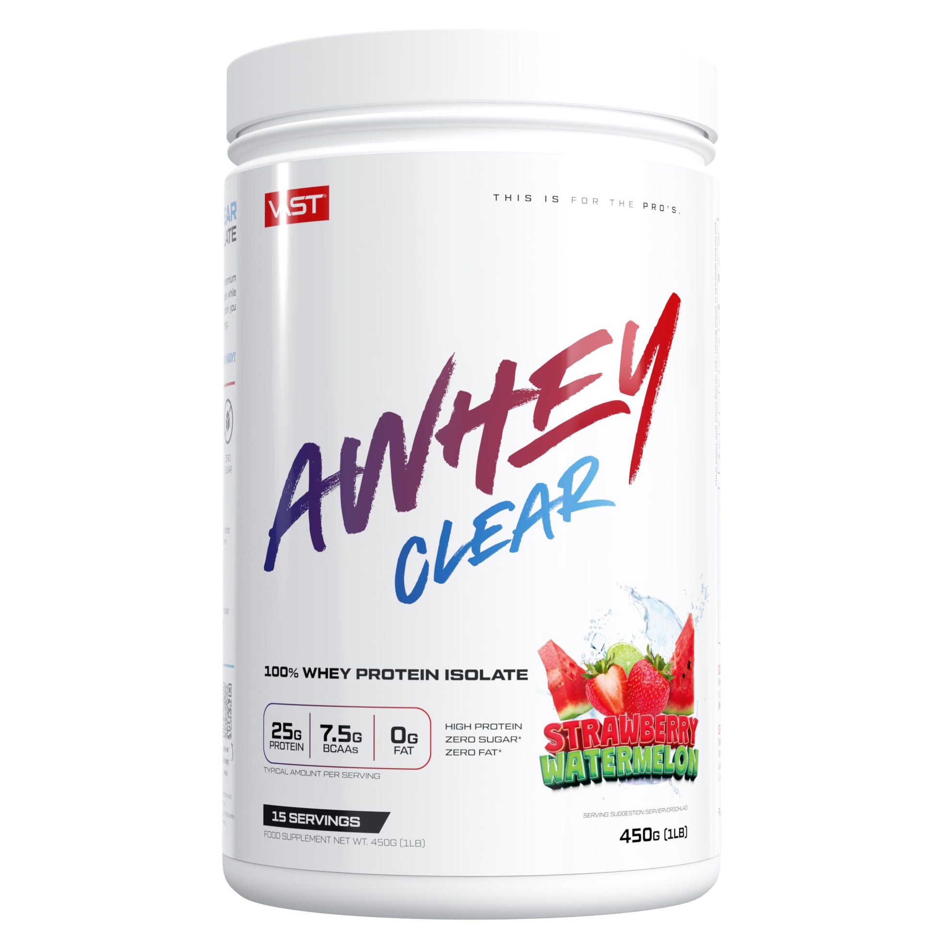 AWHEY Clear sagt Lebewohl zu Zucker und Fett und liefert 25g Protein mit weniger als 0,5g Kohlenhydrate pro Portion. Garantiert keine Schaumbildung und kein Proteinnachgeschmack!