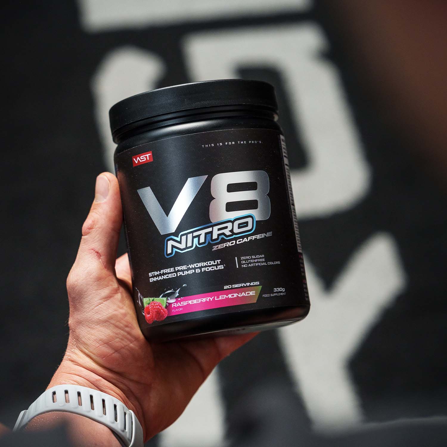 V8 Nitro liefert dir glasklaren Fokus und brachialen Pump ganz ohne Koffein.