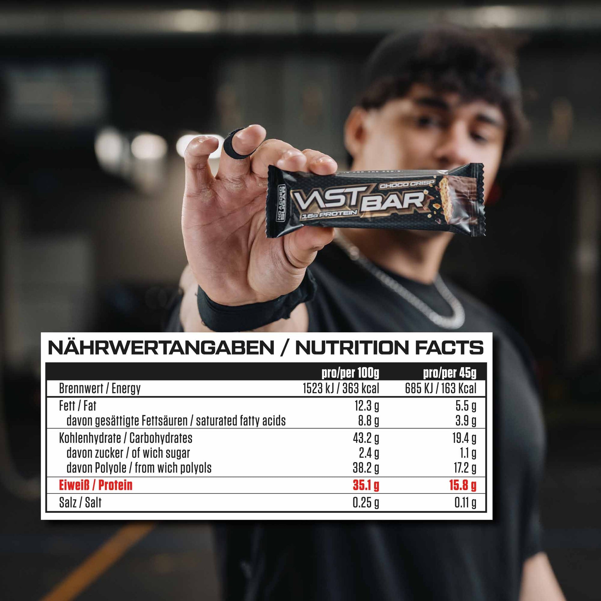 Die VAST Bar ist dein Upgrade: 16g Protein, Low Fat und zero added sugar.