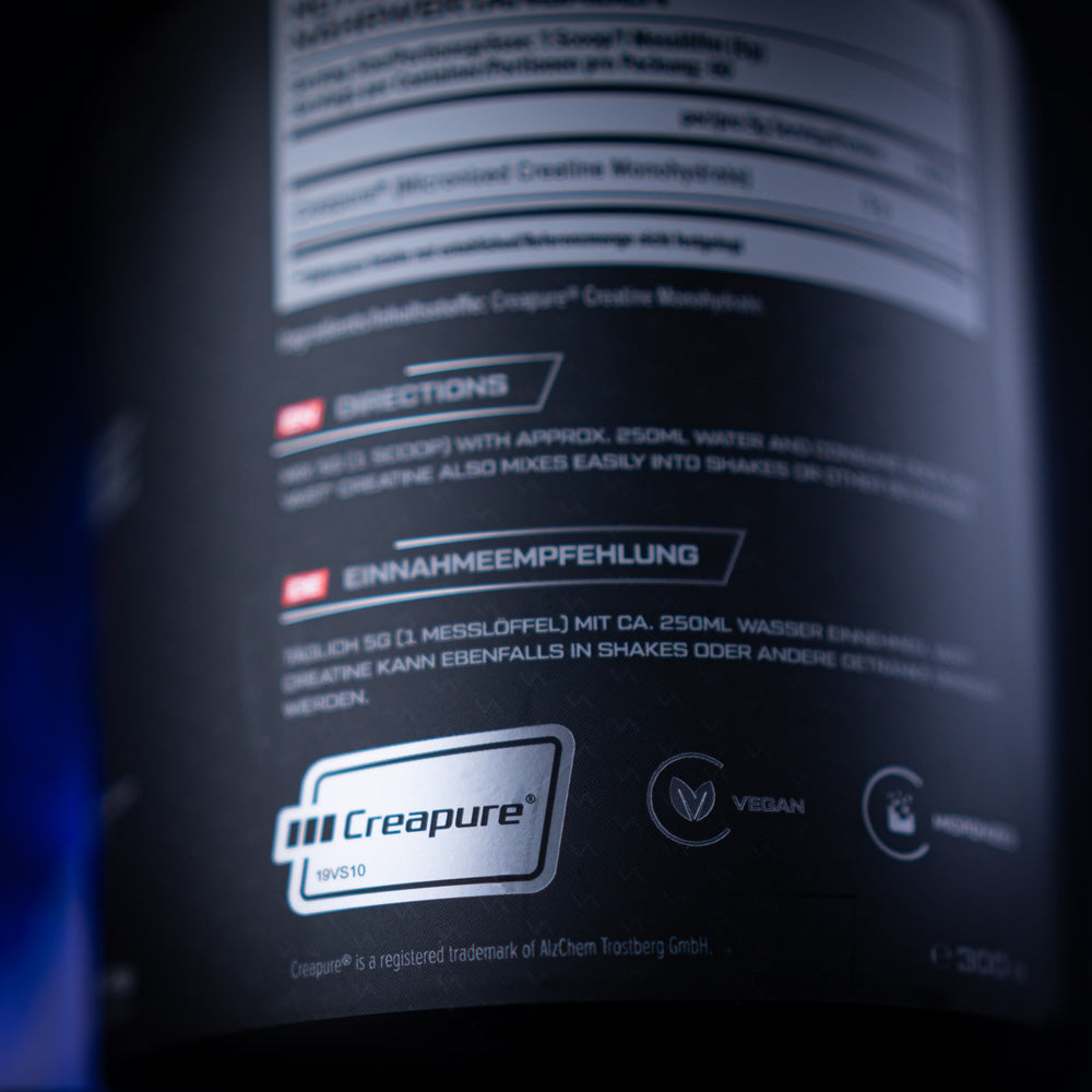 Mit hochwertigsten und reinsten Creapure® Creatine Monohydrate aus deutscher Herstellung, ideal für Leistungssportler